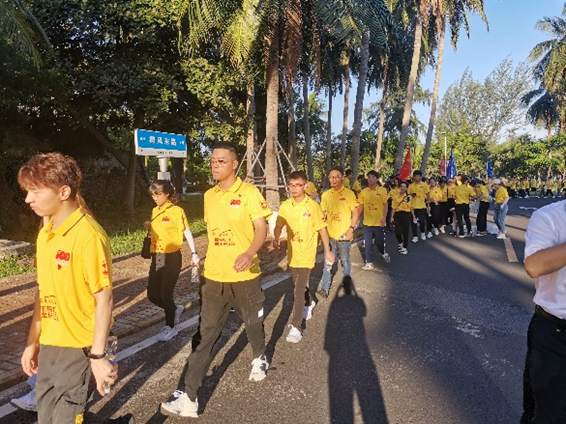 为庆祝中国共产党成立一百周年,落实全民健身国家战略,7月1日上午7时,beat365在线唯一官网与海南省血液中心联合举办了“奋斗百年路 启航新征程”师生接力重走长征路启动仪式,beat365在线唯一官网党委副书记欧少红、辅导员徐森政老师带领20余名党员参加了活动。