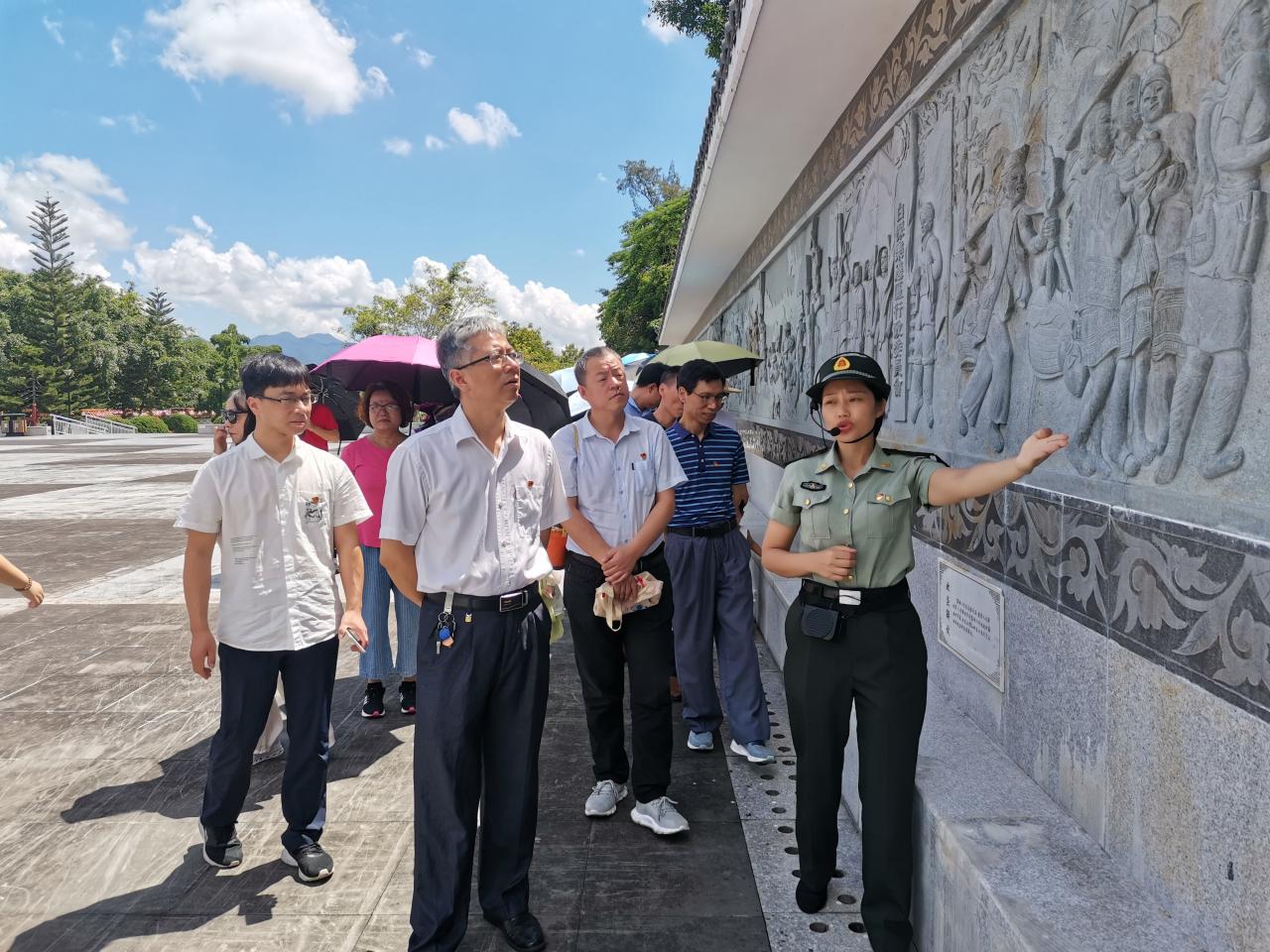 2021年7月16日上午,学院教职工30余人前往琼中开展党史学习教育现场体验活动,进一步坚定信仰信念、强化使命担当。教师们首先来到琼中白沙起义纪念园,瞻仰英雄纪念碑,了解英雄纪念墙镌刻的关于白沙起义的革命历史事件,观看白沙起义纪念馆中典籍书籍、文物照片、影视资料等承载历史记忆的展品,深切缅怀王国兴等黎族领袖带领黎族苗族人民发动著名的“白沙起义”的英雄壮举,重温了他们为民族的崛起、人民的解放,鞠躬尽瘁、死而后已的奋斗历程,深切感受到先烈们坚定的信仰和百折不挠的革命精神。邓秀成书记带领党员教师们在纪念碑前重温了入党誓词。
