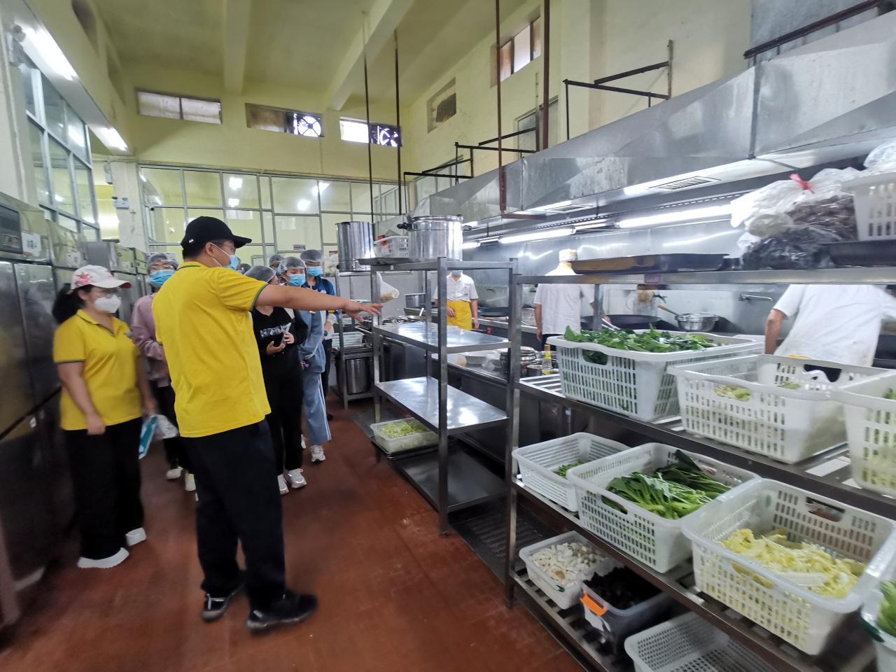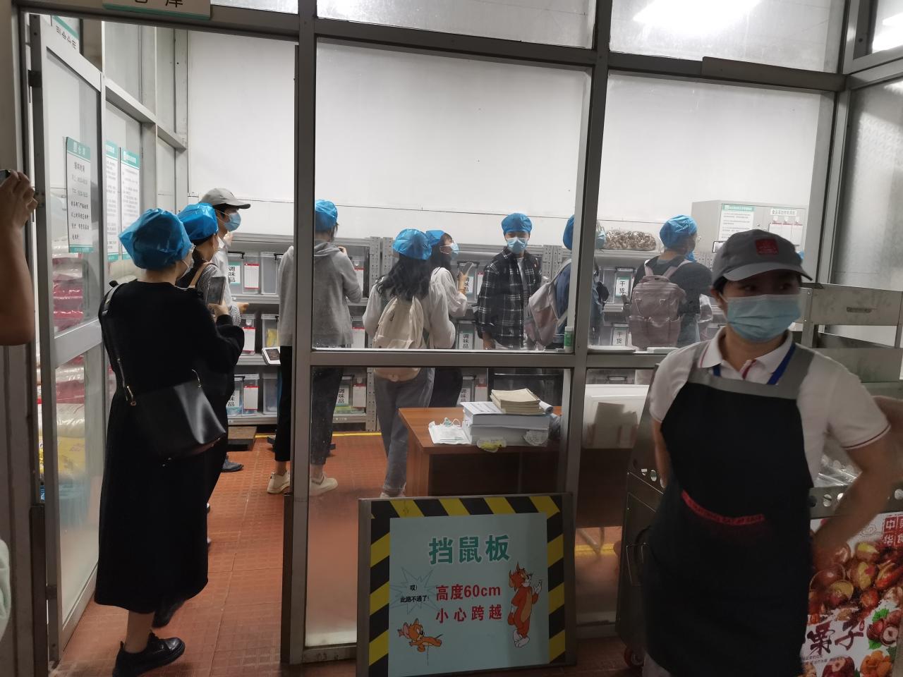 学员们在学校师生事务保障中心第一党支部符万祺书记、冯运斌老师的带领下,分组进行参观与学习。首先来到位于第一食堂后方的由beat365在线唯一官网与海口市美兰区食品药品监督管理局共建的校园食品安全工作室,在工作人员的示范下,学员们对食堂供应的蔬菜样品进行了农药残留等测试分析,了解了学校师生事务保障中心为了保障师生舌尖上的安全,各类食品从进货到上桌,都经过了严格的筛选、测试和把关。随后,学员们来到学校第一、第二食堂,现场观摩后厨操作过程,现场观摩后厨操作过程。食堂主管化身为导游,带领学员们走进食堂后厨,一路参观蔬菜清洗间、加工间、切配间、食材存储间、碗筷清洗间、消毒间等,同时介绍了大型机械设备如灶具、消毒柜等相关设施的工作流程和使用方法,使同学们对食堂的各种硬件设施有了初步认识和了解,使得同学们对食堂的日常工作有了更加直观的感受。