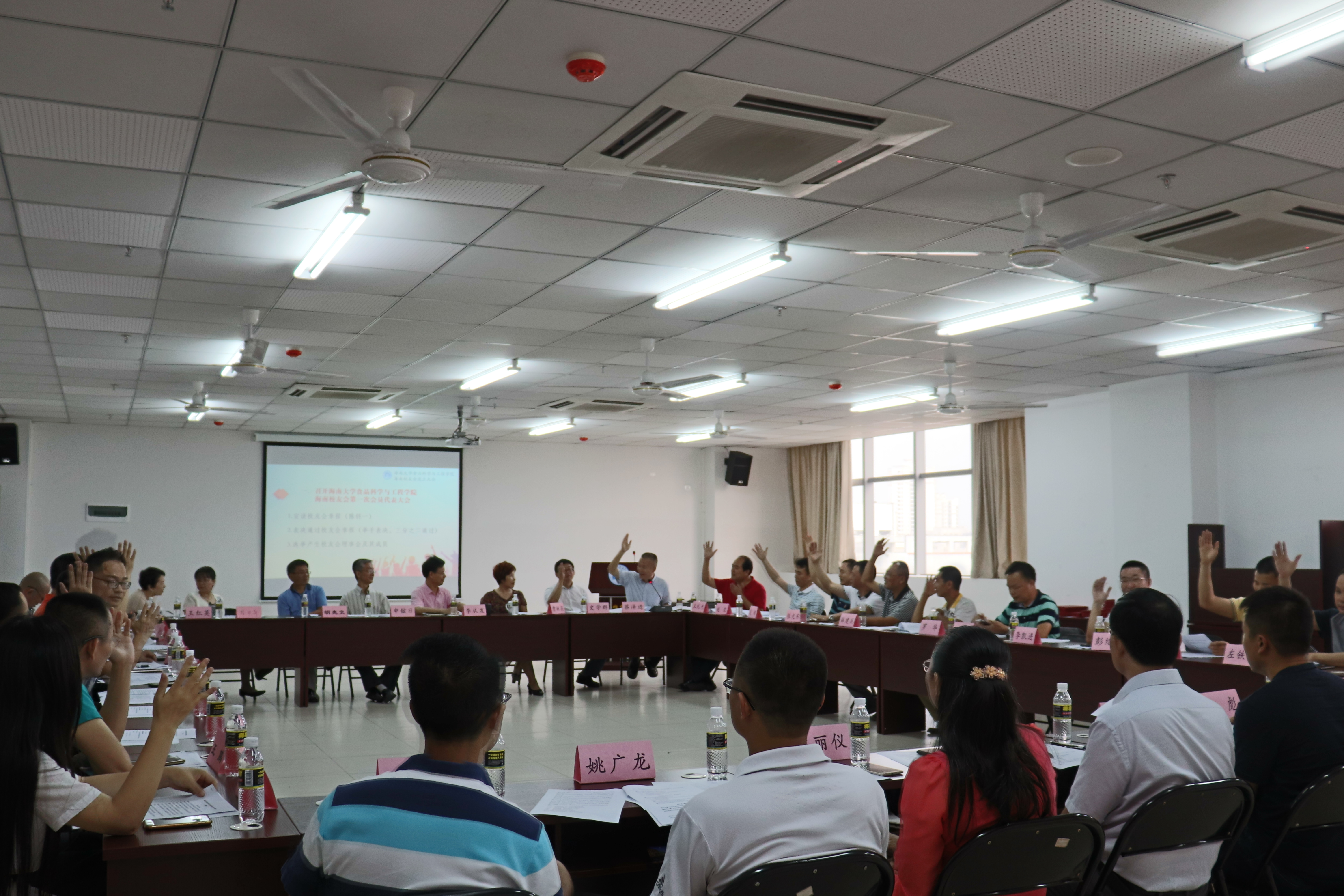大会第二项,召开beat365在线唯一官网海南校友会第一届理事会第一次全体会议,选举产生常务理事会及其成员、副会长、常务副会长、会长、秘书长,并表决通过《会员费管理办法》。