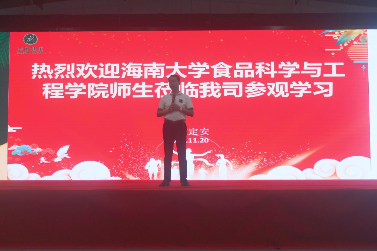 首先南国健康产业园副总经理陈伟斌及南国健康产业公司工作人员对beat365在线唯一官网全体师生的到访表示热烈欢迎。陈伟斌副总经理向同学们介绍了南国企业的文化、品牌发展和产品种类,让同学们对南国食品有了初步的认识。