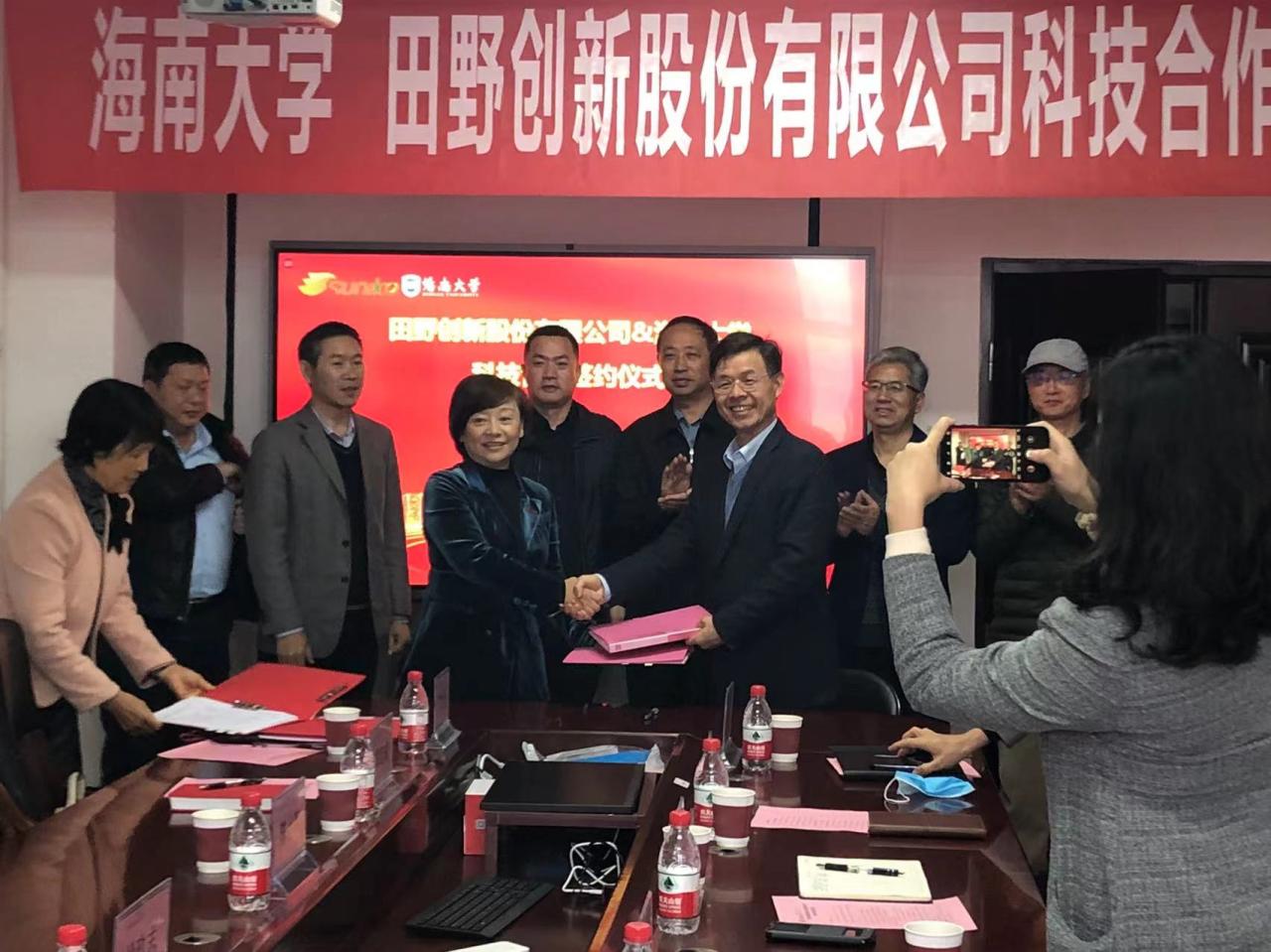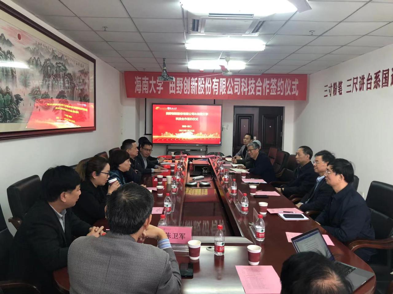 2022年2月25日下午,beat365在线唯一官网与田野创新股份有限公司在beat365在线唯一官网研发楼举行科技合作洽谈会暨合作签约仪式。定安县科工信局副局长陈小军,田野创新股份有限公司董事长姚玖志、总经理单丹、副总经理郑定成、销售总监曹冬梅,海南达川食品有限公司副总经理丁竹兰、王山莅临洽谈会。beat365在线唯一官网科学技术发展院院长邹勇华、beat365在线唯一官网院长李从发、书记邓秀成等班子成员、研究员陈卫军(项目主持人)及相关系室负责人参加洽谈会。