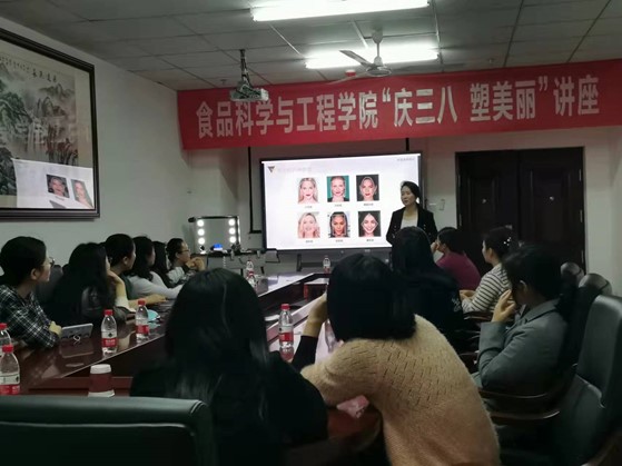 讲座中还进行化妆实操,得到学院女教师的积极参与广泛的好评。