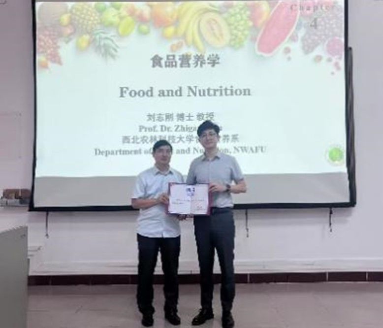 2024年10月24至25日,beat365官网邀请西北农林科技大学beat365在线唯一官网刘志刚教授来校讲授冬季小学期课程。本次授课对象为2022级食品科学与工程及食品质量与安全专业的本科生,授课内容为《食品营养学》,授课专题分别为脂质代谢与调节、脂质营养与健康。陈文学副院长对刘志刚教授的到来表示热烈欢迎,并为其颁发聘书。