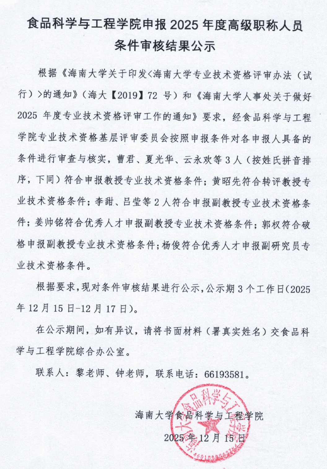 beat365在线唯一官网申报2025年度高级职称人员申报条件审核结果公示