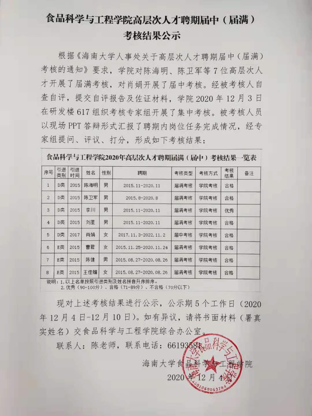 beat365在线唯一官网高层次人才聘期届中(届满)考核结果公示