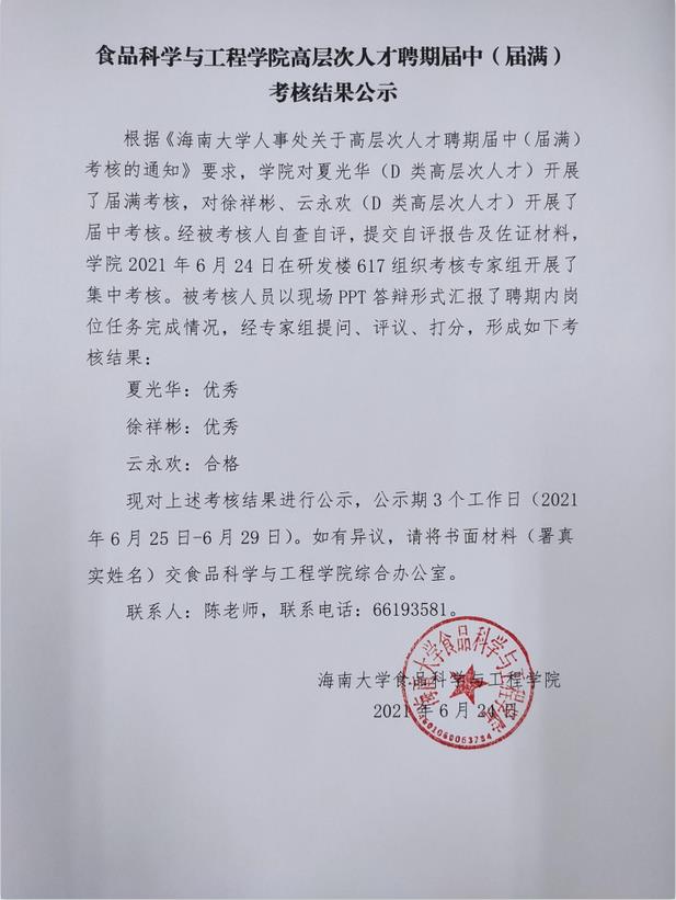 beat365在线唯一官网高层次人才聘期届满届中考核公示