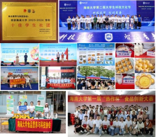 学院积极推动以专业为依托的“创新+创业+竞赛”多模式联动社团建设。学生社团组织“食品营养与科技协会”,以食品工艺学为核心,结合热带农产品加工、食品营养与安全等特色研究方向,面向全校学生开展跨学科社团活动。社团成员不仅深度参与教师科研项目,还积极筹备创新创业竞赛,形成了“高年级带低年级、研究生带本科生”的传帮带机制,充分发挥了高年级学生的引领作用,营造了良好的学习与实践氛围。